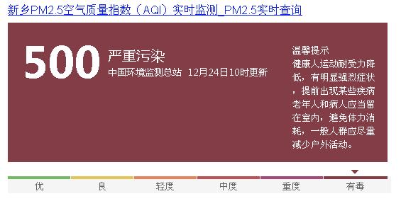 從昨日起,新鄉(xiāng)地區(qū)進入嚴重污染天氣,空氣污染程度遠超500值,屬于重度污染。且新鄉(xiāng)市重污染天氣預(yù)警應(yīng)急響應(yīng)升級為一級(紅色)預(yù)警響應(yīng),市區(qū)車輛限行,幼兒園、中小學(xué)今天停課。鑒于近期空氣質(zhì)量過差,中信化工在此提醒所有員工謹慎出行。